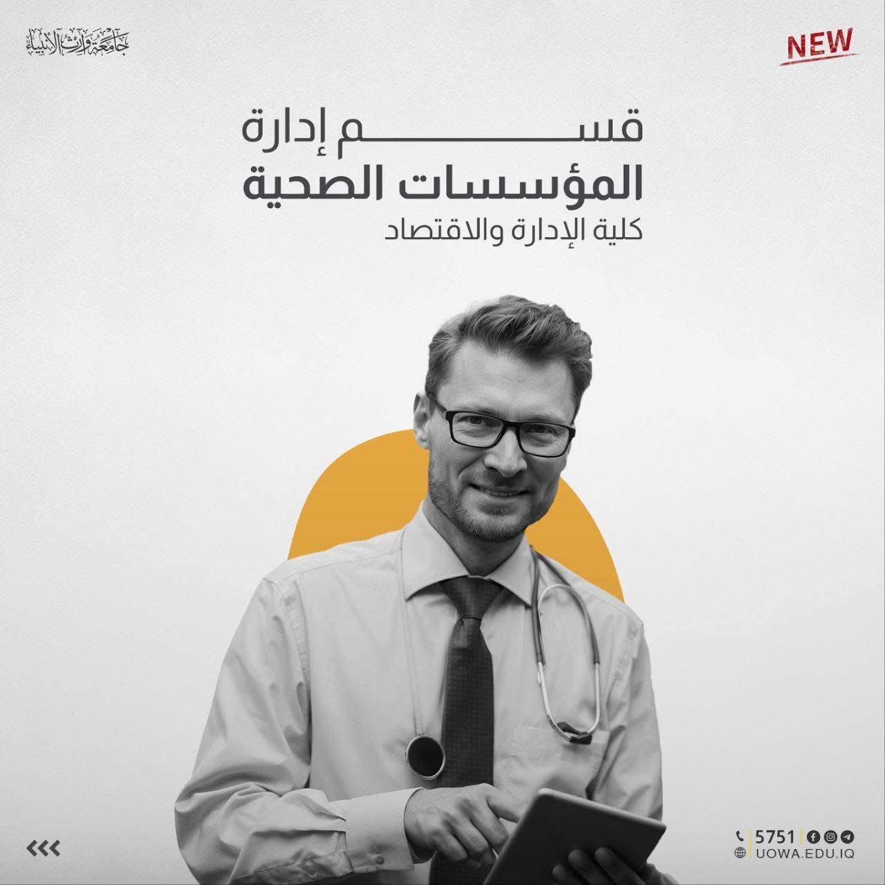 قسم إدارة المؤسسات الصحية في كلية الإدارة والاقتصاد – جامعة وارث الأنبياء (عليه السلام) يؤهّلك لتكون جزءاً من قيادة النظام الصحي الحديث في البلاد
