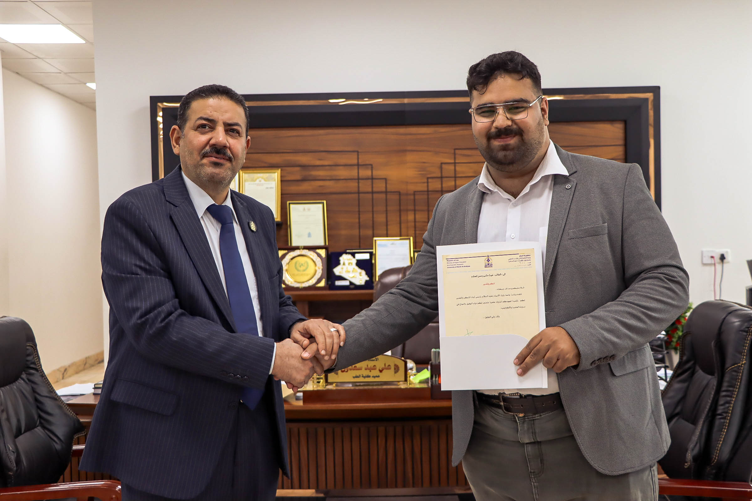 وإذ تعرب الكلية عن اعتزازها بما حققه من مستوى مشرف، فإنها تتمنى له دوام النجاح والتوفيق في مسيرته العلمية والمهنية خدمةً للمجتمع والوطن.