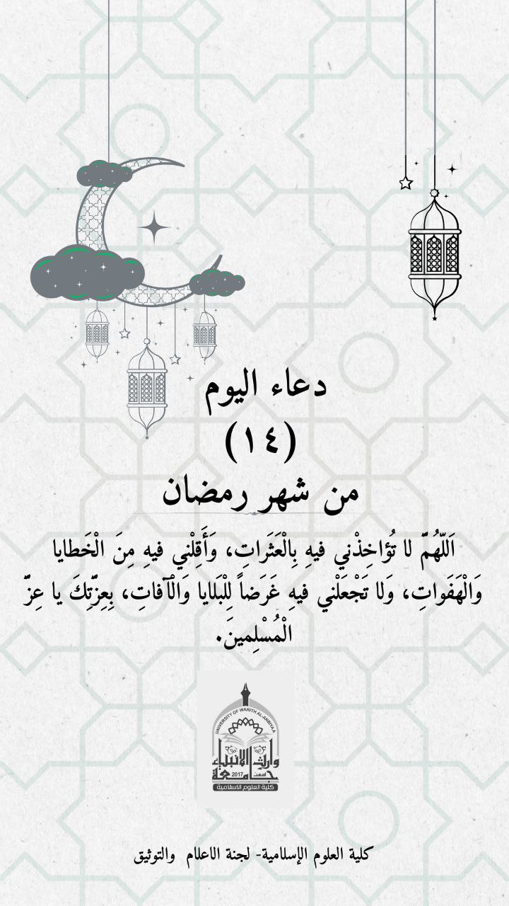 تتقدّم كلية العلوم الإسلامية في جامعة وارث الأنبياء (عليه السلام) بأسمى آيات التعزية وصادق المواساة إلى العالم الإسلامي، والمراجع الدينية العظام، والعلماء الأعلام، بذكرى وفاة العقيلة الهاشمية السيدة زينب الكبرى (عليها السلام)، في الخامس عشر من شهر رجب الأصب.
