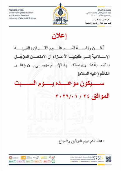تستعد كلية العلوم الإسلامية لإقامة نشاطها السنوي الموسوم «حبًّا بالحسين (عليه السلام)، والذي يأتي إحياءً لنهج سيد الشهداء الإمام الحسين (عليه السلام)، واستلهامًا لقيمه الإصلاحية والإنسانية الخالدة.