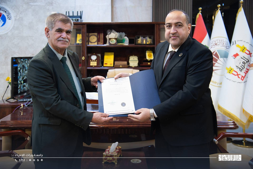كرّم رئيس جامعة وارث الأنبياء (عليه السلام)، الأستاذ الدكتور إبراهيم سعيد الحياوي، الأستاذ الدكتور عبد الكريم عبد الله محمود، رئيس فرع طب المجتمع في كلية الطب، بمناسبة منحه لقب (أستاذ متمرس)، تقديرًا لمسيرته الأكاديمية المتميزة وعطائه العلمي في مجال التعليم الطبي والبحث العلمي.