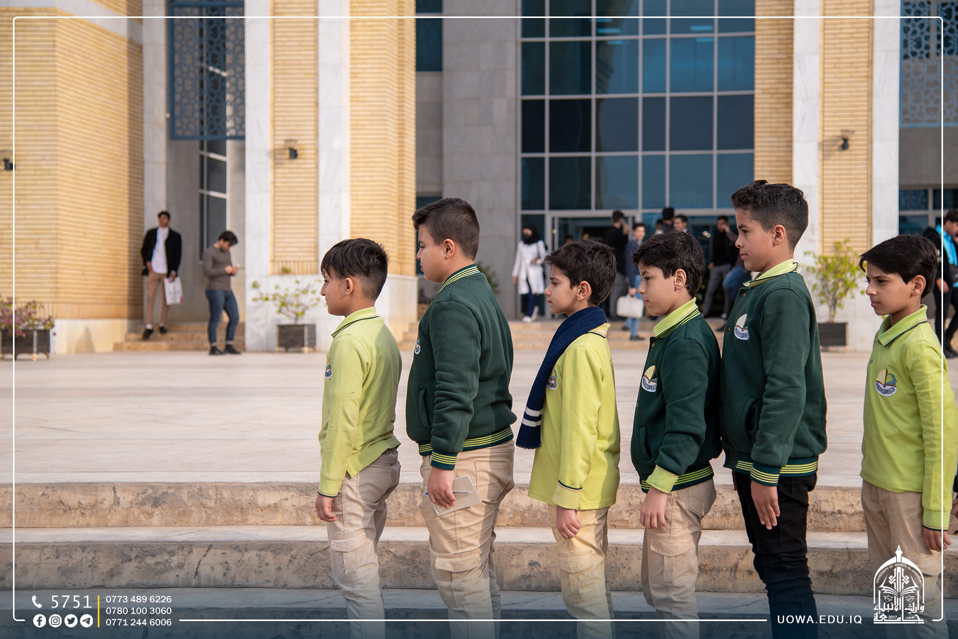 استقبلت جامعة وارث الأنبياء (عليه السلام) عدد من طلبة مرحلة الخامس الابتدائي في مدرسة الق الوارث الابتدائية التابعة للعتبة الحسينية المقدسة، وتجول الطلبة في أروقة الجامعة وكلية التمريض واطلعوا على المختبرات العلمية فيها، وتم تقديم شرح مختصر عن مختبر الكيمياء والتشريح، إذ تساهم هذه الرحلات في تنمية مهارات الطلبة، وفي نهاية السفرة خط الطلبة رسائل شكر الى الجامعة بأناملهم اليافعة، عبروا من خلالها عن التفاصيل الجميل التي شاهدوها في الجامعة بأنامل بريئة .