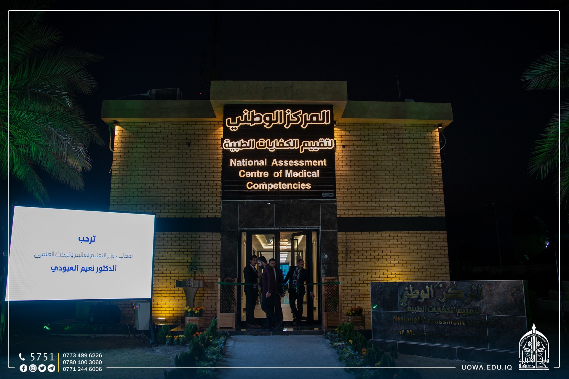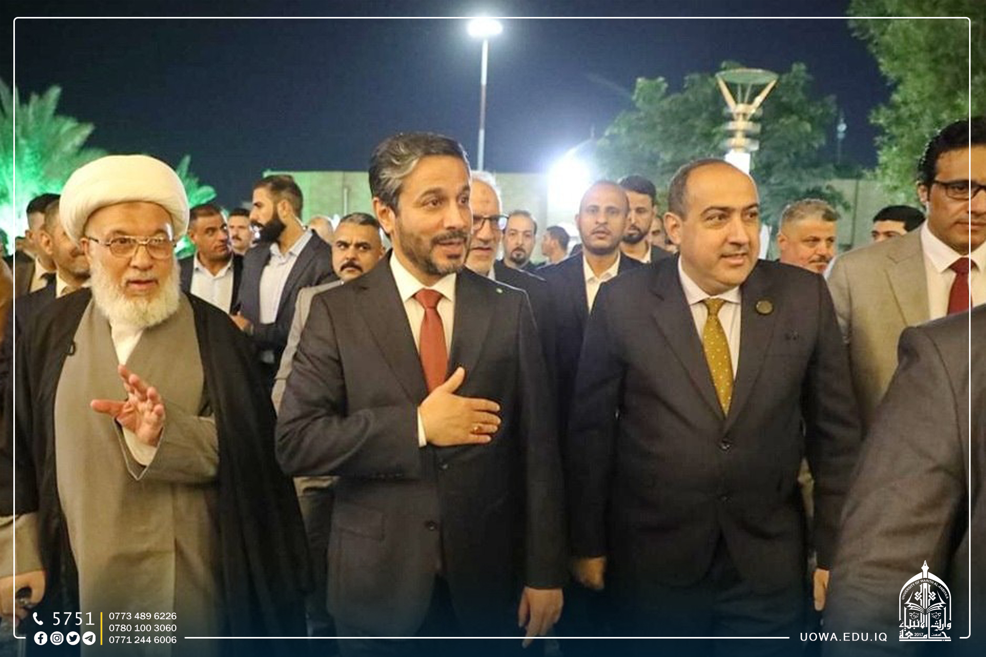 صرح وزير التعليم العالي والبحث العلمي الدكتور نعيم العبودي قائلاً: أن ما نراه في جامعات العتبة الحسينية المقدسة هو رسالة واضحة للمؤسسات التعليمية الأهلية الاخرى بأن تحث الخطى لتكون كما جامعة وارث الانبياء(عليه السلام) وجامعة الزهراء(عليها السلام) للبنات، من حيث توفير كل السبل التطويرية التي يحتاجها الطالب بهدف الارتقاء بمستوى التعليم في العراق موضحا أن التعليم بين الحكومي والأهلي سيكون ضمن مسار موحد ومحاور واحدة مشيدا بالدور الممتاز الذي تمارسه الأمانة العامة للعتبة الحسينية من خلال عمليات إنشاء الصروح العلمية والطبية المتميزة لكافة شرائح المجتمع العراقي.