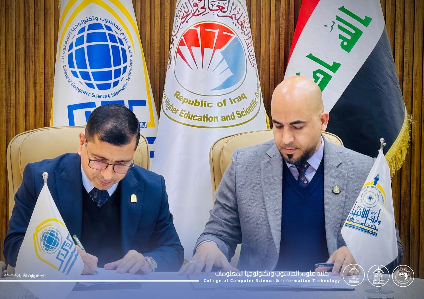 وقعت كلية الإدارة والإقتصاد في جامعة وارث الانبياء(عليه السلام) اتفاقية علمية مع كلية الإدارة الصناعية للنفط والغاز في جامعة البصرة ،مثل الجامعة السيدان المعاونان العلمي والاداري لعميد كلية الادارة والاقتصاد الدكتور فهد مغيمش الشمري، والدكتور حسين معتوق ، ومثل كلية الادارة الصناعية عميد الكلية الاستاذ الدكتور سامي عبيد التميمي.حيث تضمنت الإتفاقية مجموعة من المحاور والبرامج العلمية الأكاديمية منها تبادل الزيارات العلمية، واقامة المؤتمرات، وكتابة البحوث المشتركة بين اساتذة الجامعتين ، بالاضافة الى تقييم الاداء والاشراف العلمي وبرامج لتدريب الطلبة.