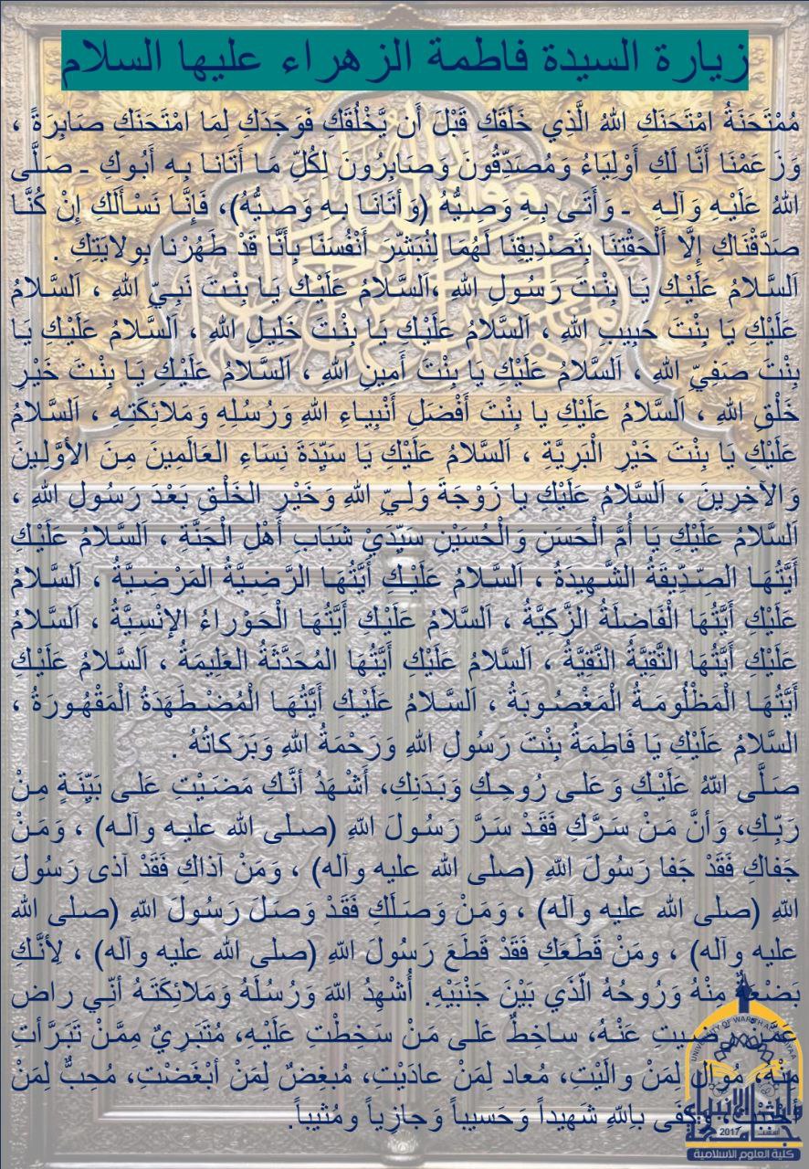 ونسأله سبحانه أن يفيض علينا من نورها، ويجعلنا من المتمسكين بسيرتها ونهجها، وأن يحفظ عراقنا العزيز ويرفع شأن العلم وأهله.