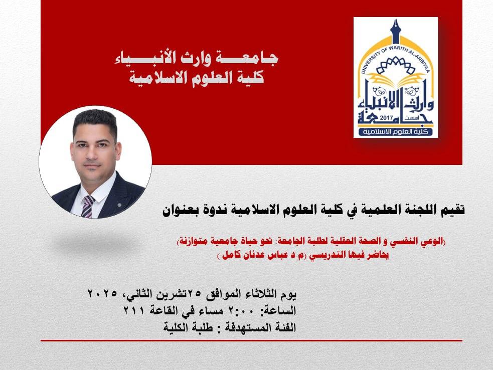 برعاية الأمانة العامة للعتبة الحسينية المقدسة، نظّمت كلية الطب في جامعة وارث الأنبياء ندوة علمية بعنوان "ارتباط الدين بالطب" قدّمها السيد الدكتور صادق المروج، بحضور جمع من طلبة الكلية وأساتذتها.وتناولت الندوة محاور عدّة، أبرزها كيفية ربط القرآن الكريم بالعلم، وبيان تأثير القرآن على طالب العلم في الجانبين الأخلاقي والمعرفي، إضافة إلى بحث العلاقة بين التعاليم الدينية والمفاهيم الطبية الحديثة.وفي مستهل الندوة، جُمعت أسئلة الحضور عبر قصاصات ورقية ليتم الإجابة عنها أثناء الجلسة، كما شهدت الفعالية توزيع أحاديث من كلام أهل البيت عليهم السلام مرتبطة بالطب، بهدف تعزيز البعد القيمي والإنساني في الممارسة الطبية.