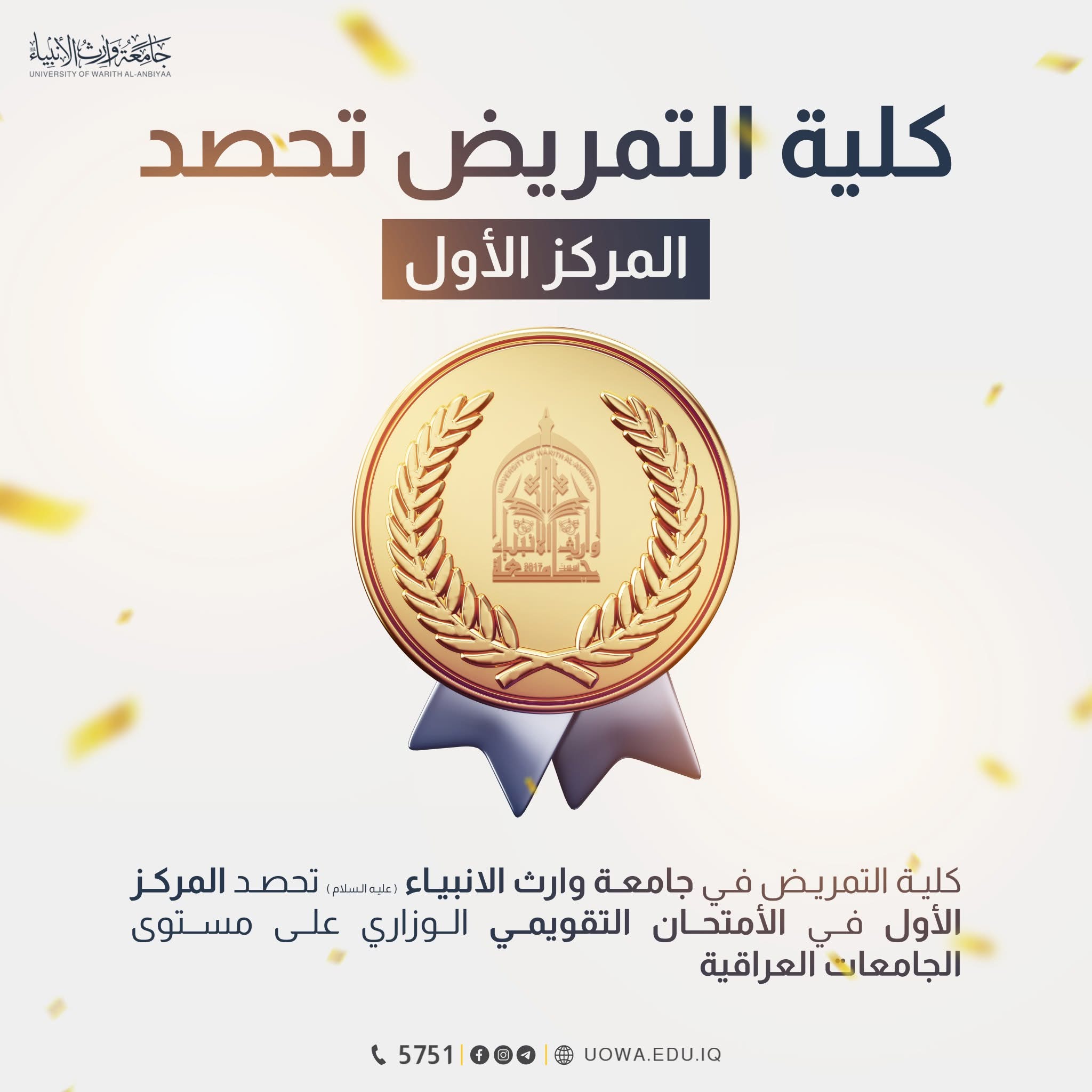 حققت كلية الإدارة والاقتصاد في جامعة وارث الأنبياء (عليها السلام) إنجازًا أكاديميًا لافتًا بحصول عدد من أقسامها العلمية على مراكز متقدمة في الامتحان التقويمي الوزاري على مستوى الجامعات العراقية، ما يعكس جودة التعليم الأكاديمي والتطور المستمر في برامجها الدراسية.