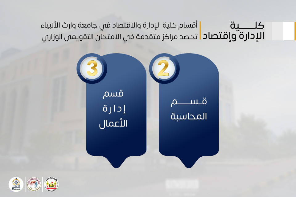 وجاء قسم المحاسبة في المركز الثاني على مستوى العراق، مؤكّدًا ما يشهده القسم من تصاعد في المستوى العلمي بجهود كوادره التدريسية، فيما حقق قسم إدارة الأعمال المركز الثالث، ليؤكد حضوره المتميز من خلال اعتماد أساليب تعليمية حديثة وبرامج تطبيقية تعزز مهارات الطلبة وتواكب متطلبات سوق العمل.