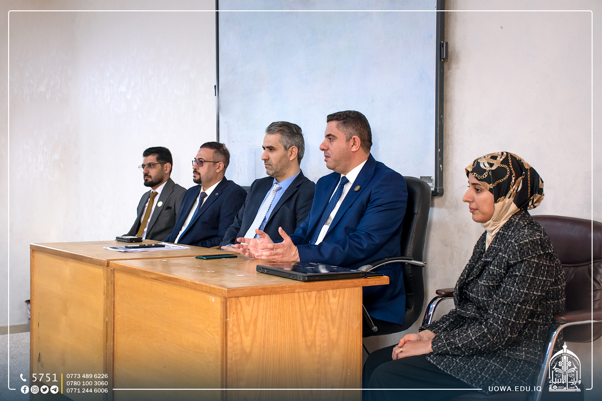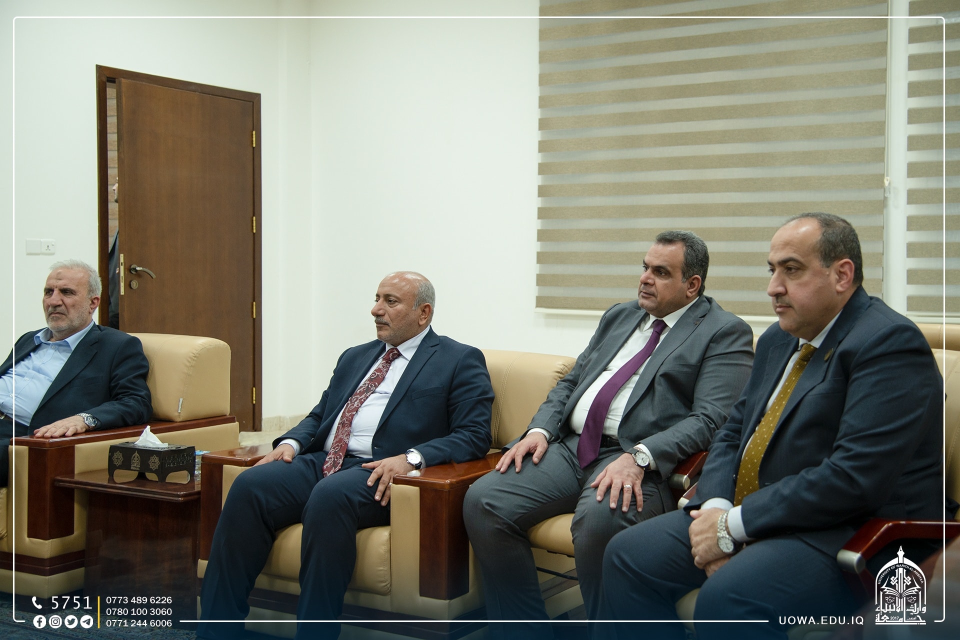 استضاف السيد رئيس الجامعة الاستاذ الدكتور ابراهيم الحياوي في مكتبه الخاص، سماحة الشيخ عبد المهدي الكربلائي(دام عزه) ومعالي وزير التعليم الدكتور نعيم العبودي والسيد محافظ كربلاء المهندس نصيف الخطابي والسيد الامين العام للعتبة الحسينية الاستاذ حسن رشيد والدكتور ستار الساعدي رئيس هيئة الصحة والتعليم الجامعي.