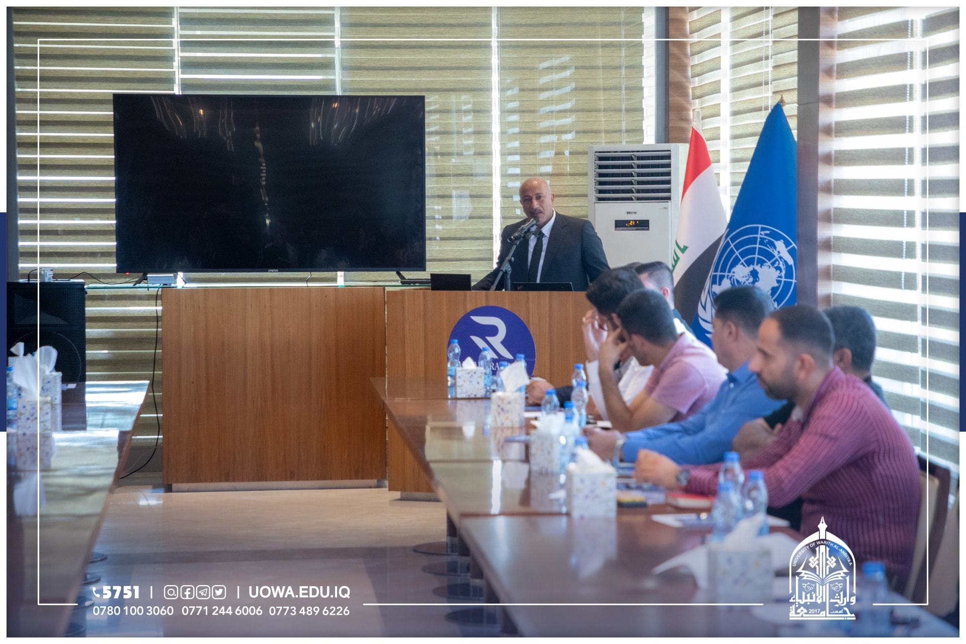 شارك طلبة جامعة وارث الانبياء(عليه السلام) بحضور المساعد العلمي الاستاذ الدكتور عباس الدعمي ومحافظ كربلاء المهندس نصيف جاسم الخطابي، ورئيس جامعة كربلاء الاستاذ الدكتور باسم السعيدي، في "المؤتمر الختامي لعرض مبادرات الشباب في التنمية المستدامة" الذي اقامه البرنامج الانمائي للامم المتحدة.