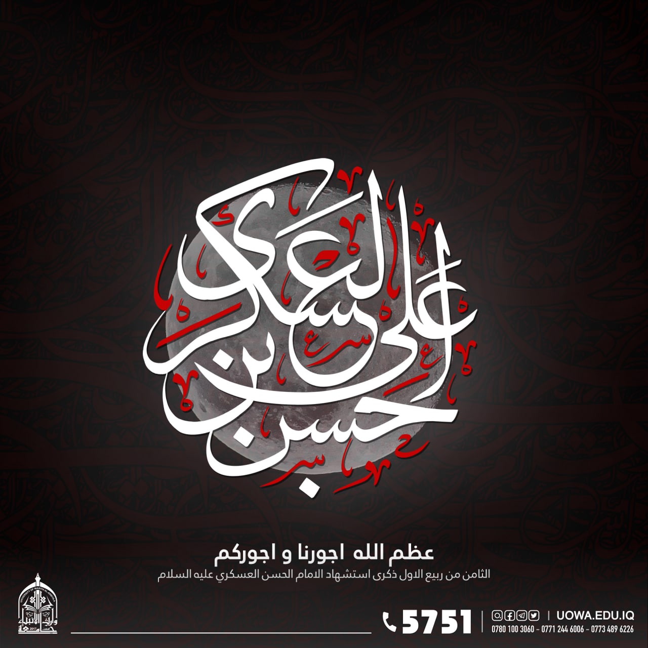 عظم الله لكم الاجر باستشهاد الداعي بحكم الله والناطق بكتاب الله ركن المؤمنين وعصمة المتقين ابا محمد الحسن بن علي الهادي عليهما السلام