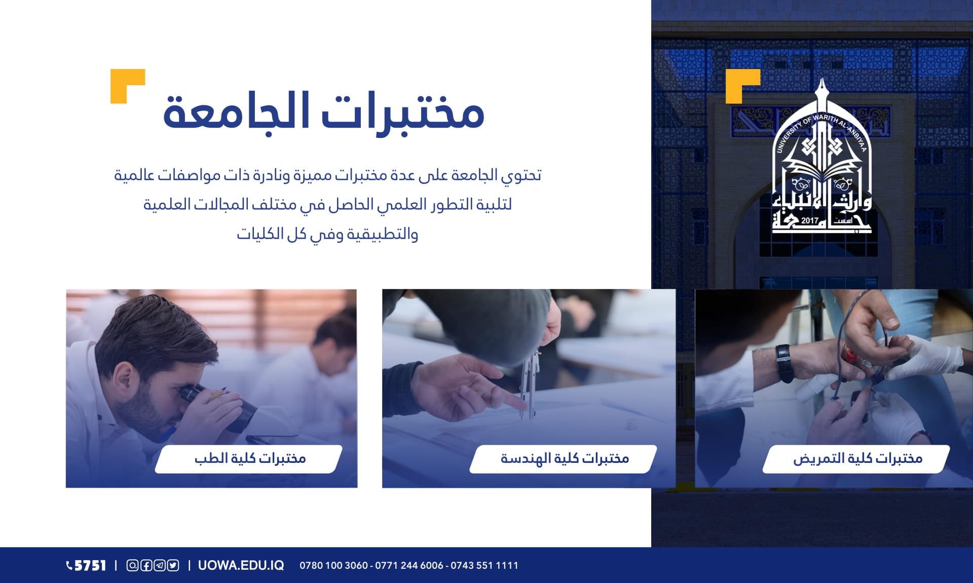 يسر جامعة وارث الأنبياء أن تعلن للطلبة الاعزاء الراغبين ببدء اولى خطواتهم في طريق النجاح عبر التقديم على كليات واقسام الجامعة، للعام الدراسي (2022-2023)