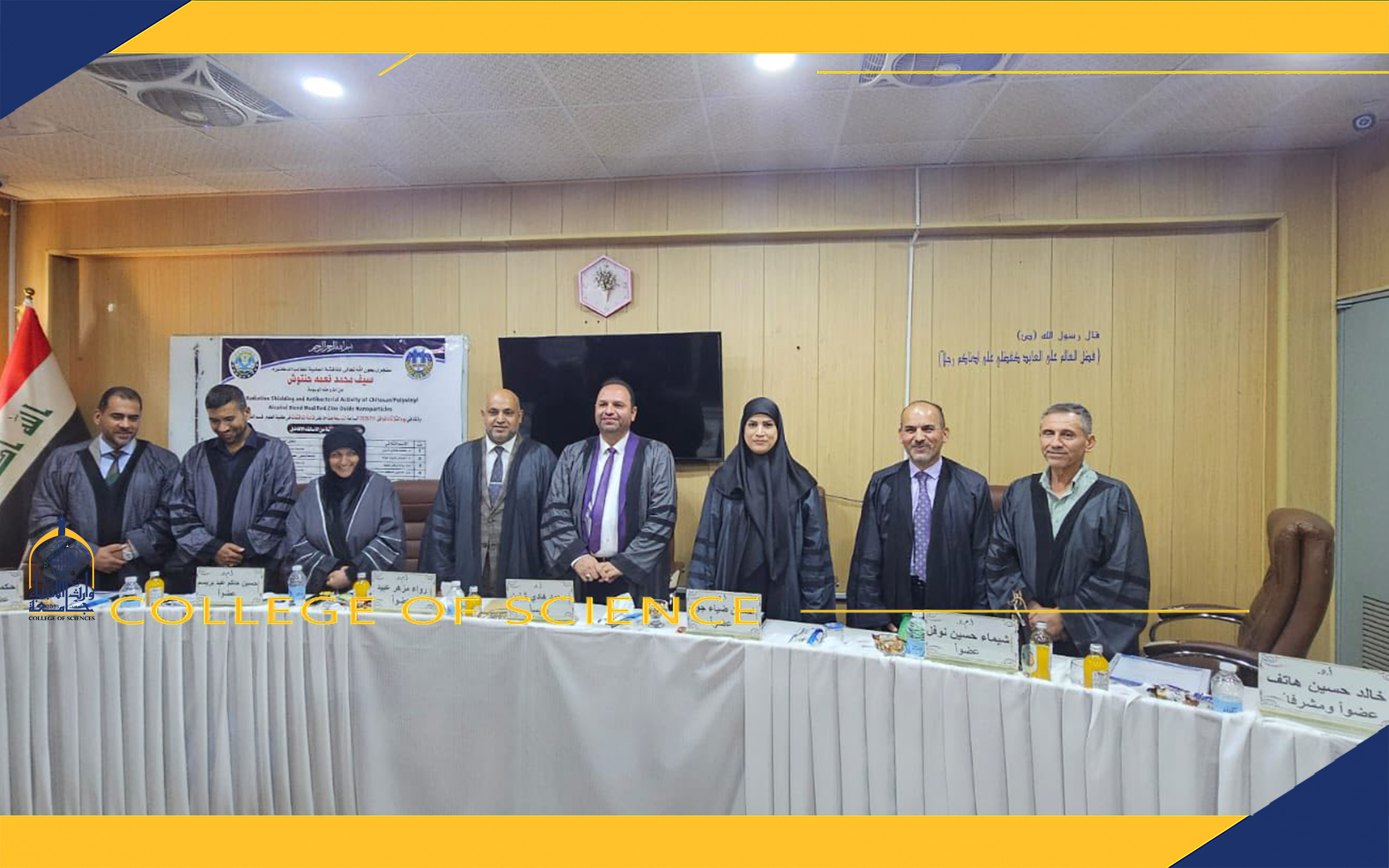 Assistant Professor Dr. Shaimaa Hussein Nofal, Dean of the College of Science at University of Warith Al-Anbiyaa, participated as a member of the doctoral dissertation defense committee in Physics for the candidate Saif Mohammed Nima Hantoush. The defense was held at the College of Science, Department of Physics, at University of Babylon.