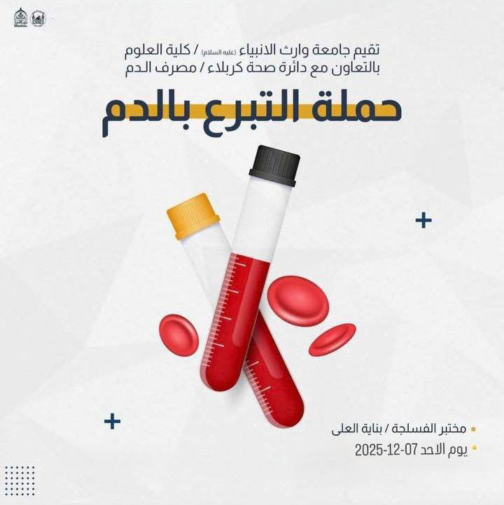 The College of Science at the University of Warith Al-Anbiyaa launched a blood donation initiative with the participation of academic staff and university employees. The initiative aimed to support the blood bank in Karbala and contribute to meeting the community’s medical needs.