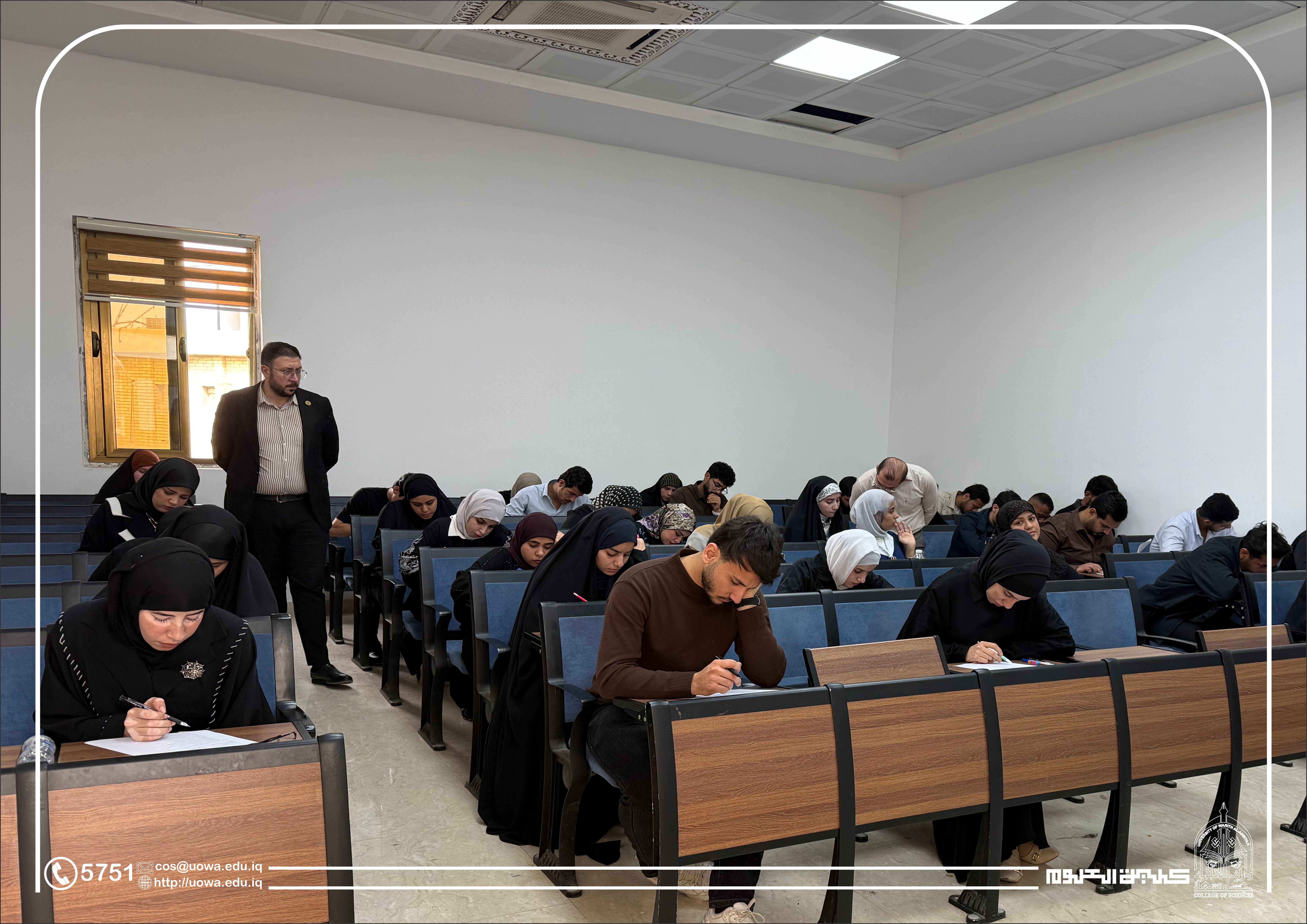 The examination process has been conducted in accordance with approved academic and administrative procedures, under the direct supervision of the College Deanship and the Head of the Department. All necessary logistical and organizational requirements have been provided to ensure the smooth and orderly conduct of the examinations, in line with the applicable ministerial regulations and instructions.