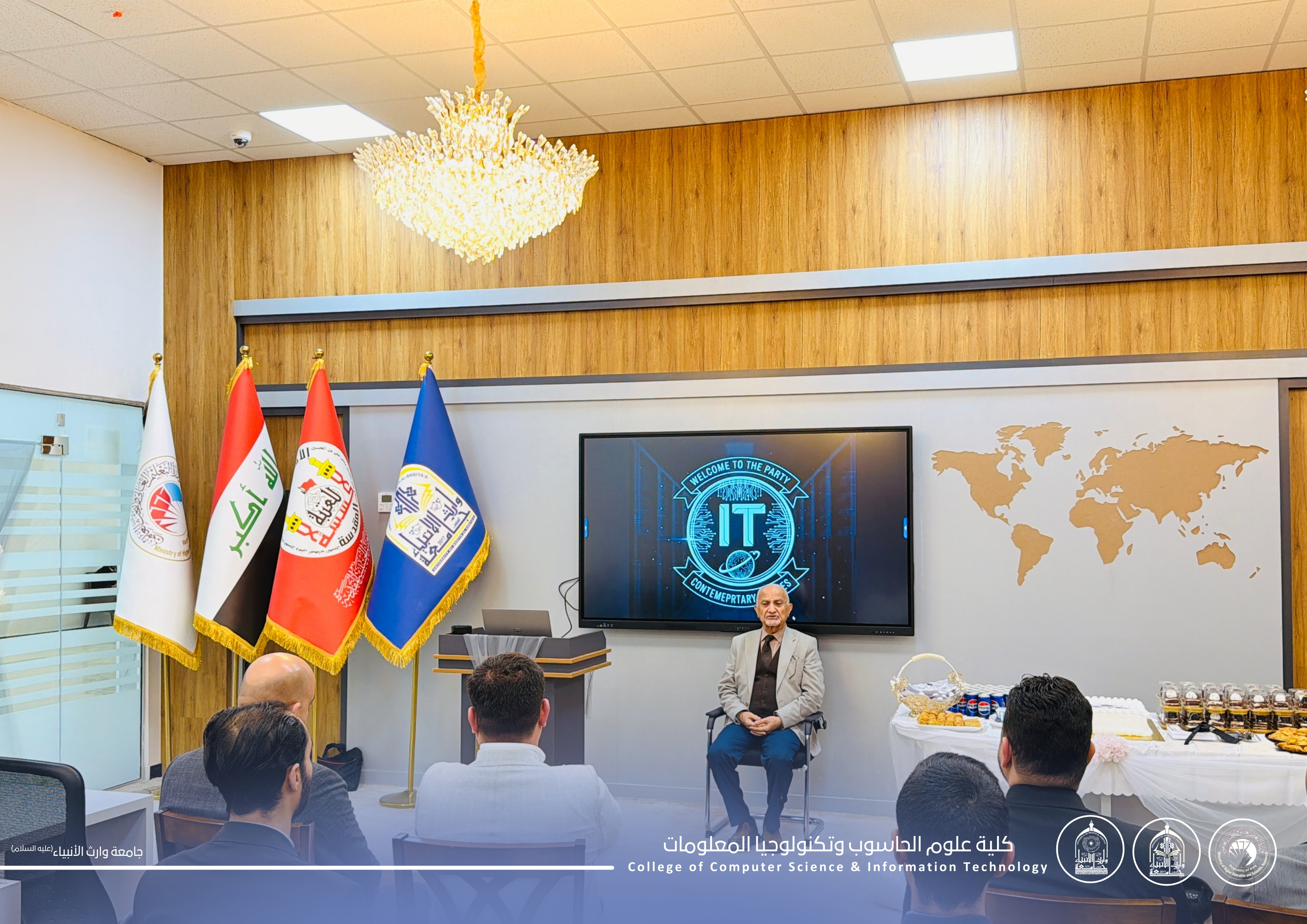 The College of Administration and Economics at the University of Warith Al-Anbiya (Peace Be Upon Him) celebrated the birth anniversary of Imam Al-Mahdi (May God Hasten His Reappearance), with poetic performances and poems expressing love for the Ahl al-Bayt, recited by the college students. In addition, an awareness lecture was delivered by Sheikh Dr. Star Awaid from the College of Islamic Sciences at the university.