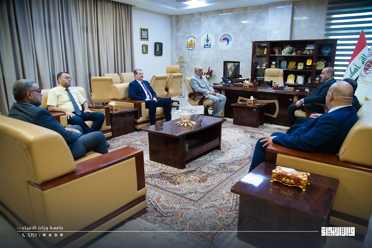Within the framework of academic openness and strengthening cooperation between educational institutions, the President of Warith Al-Anbiya University, Professor Dr. Ibrahim Saeed Al-Hayawi, and the Dean of the College of Medicine, Professor Dr. Ali Abdul Saadoun, received a delegation from Hammurabi College of Medicine – University of Babylon, headed by the Dean of the College, Professor Dr. Hadi Al-Moussawi, in an official scientific visit during which a joint cooperation agreement was signed between the two sides. The agreement aims to develop the fields of medical education, scientific research, clinical training, and the exchange of academic expertise between the two colleges, thereby contributing to raising the level of medical education in Iraq and providing an integrated scientific environment that supports innovation and research.
