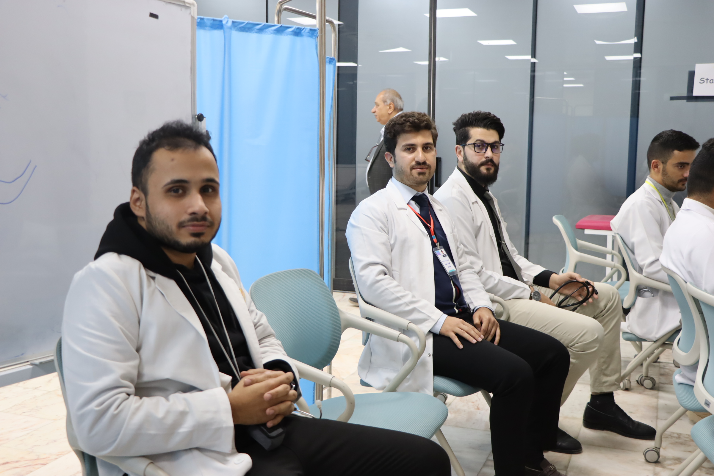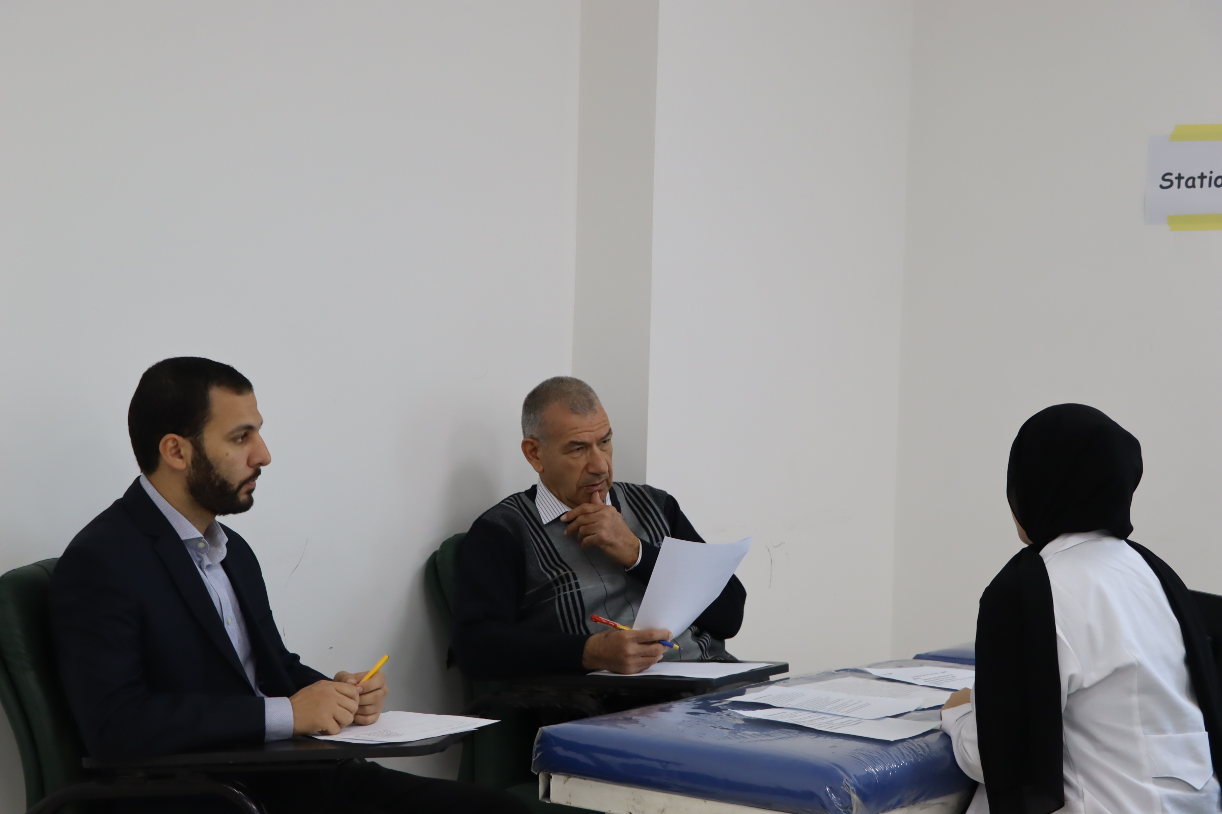 The exams were characterized by their high level of organization and the distribution of students across multiple clinical stations, carefully designed to cover various medical aspects—from taking a medical history and performing a physical examination to communication skills, diagnosing clinical cases, and managing time while interacting with patients.