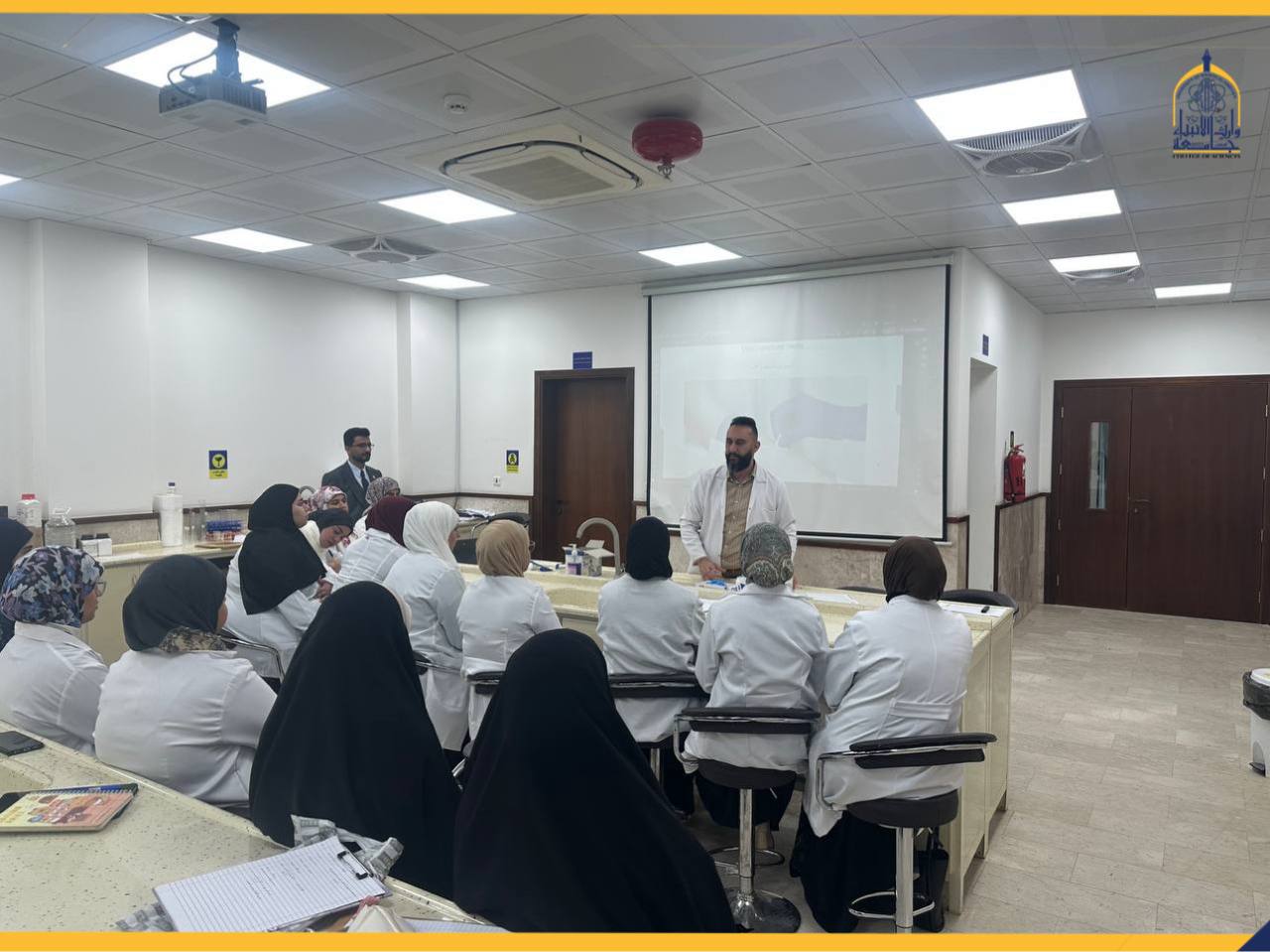 As part of its ongoing efforts to develop students’ practical skills and link theoretical knowledge with real-world application, the College of Science at Warith Al-Anbiyaa University (peace be upon him) held a training workshop entitled “Blood Sampling Skills: Fundamentals and Applications.”